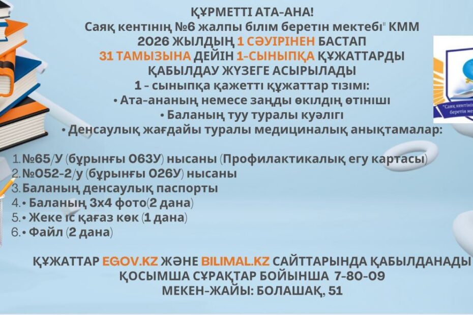 Балқаш қаласы білім бөлімінің "Саяқ кентінің № 6 жалпы білім беретін мектебі" КММ ЖаңалықтарыНаурыз 26, 2026