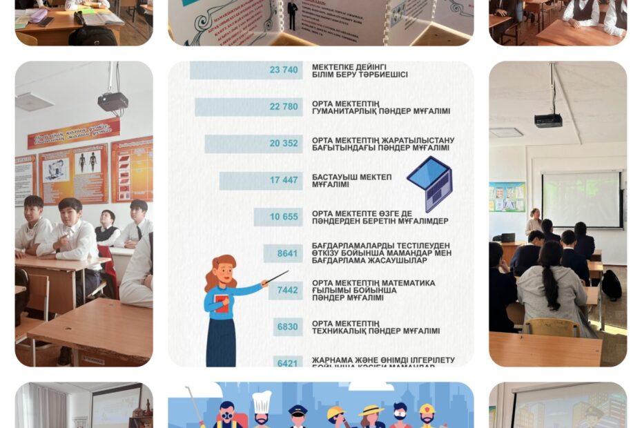 26 қараша мектебімізде «Мамандықтар әлемі» тақырыбында 5–11 сынып оқушыларына кәсіптік…Қараша 26, 2025