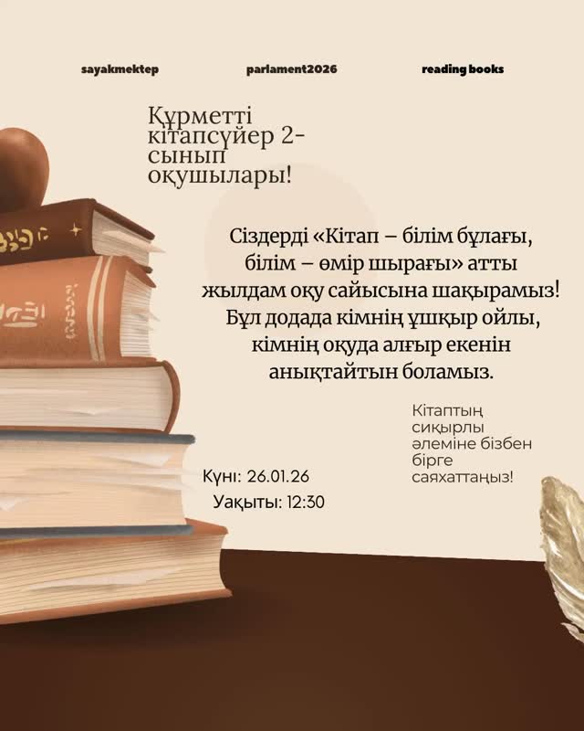 “Өзін-өзі тану, бақыт” фракциясы “Зерде бағыты” бойынша “ Кітап білім бұлағы-білім өмір шырағы” жылдамдыққа кітап оқу 2- сынып оқушылар арасында сайыс өтеді. #біртұтас_тәрбие #балқашқаласыбілімбөлімі #қоббтәрбие #адал_азамат #umckrg